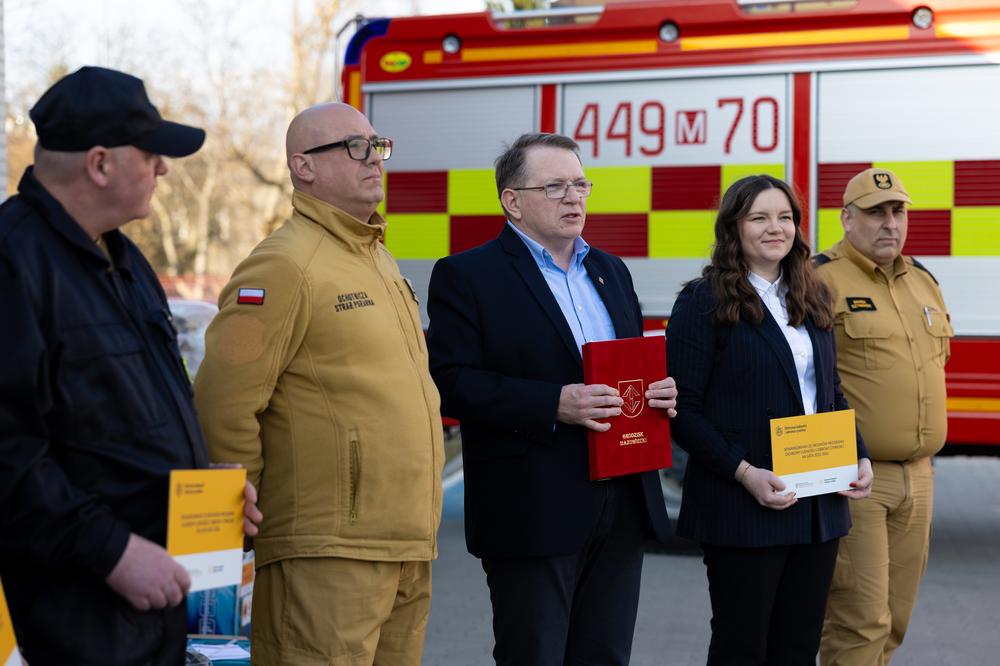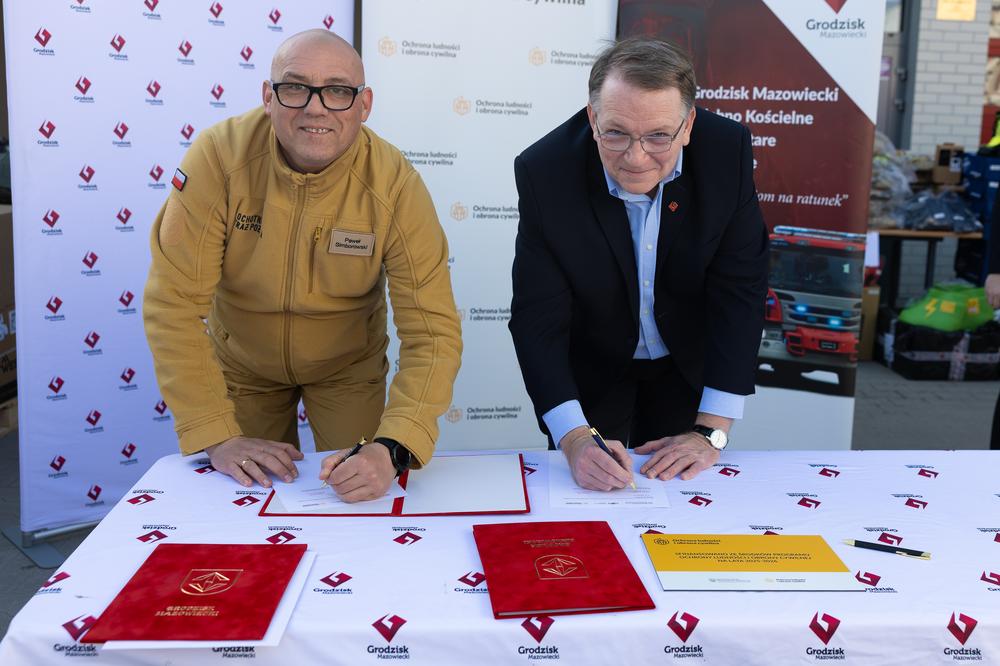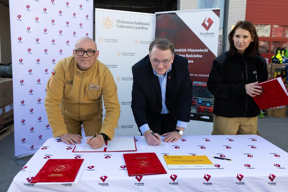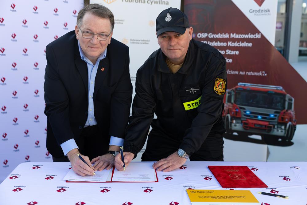 W sobotę 7 marca w Gminie Grodzisk Mazowiecki odbyło się uroczyste przekazanie sprzętu zakupionego w ramach programu Ochrony Ludności i Obrony Cywilnej. W wydarzeniu uczestniczyli Zastępca Burmistrza Grodziska Mazowieckiego Norbert Cegliński oraz Zastępca Komendanta Powiatowego PSP w Grodzisku Mazowieckim bryg. Marek Szymanek.